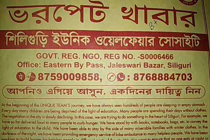 Siliguri Unique Welfare Society, Jaleshwari Bajar – For Poor and needy people of Society.
